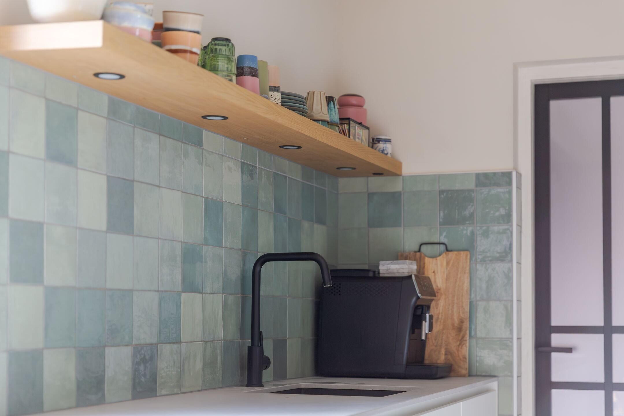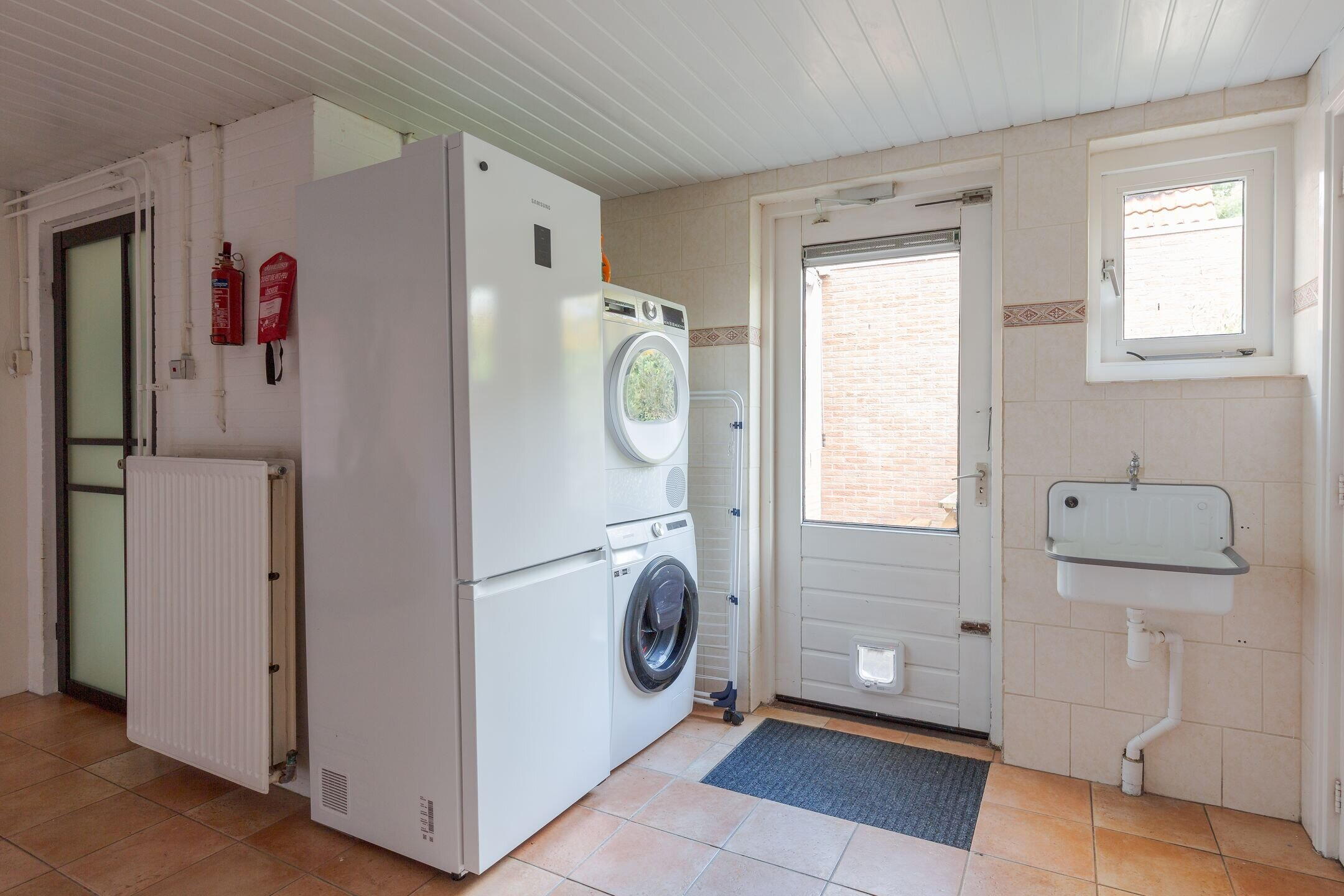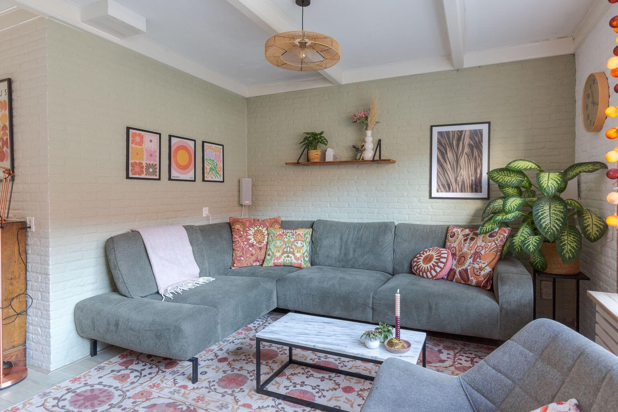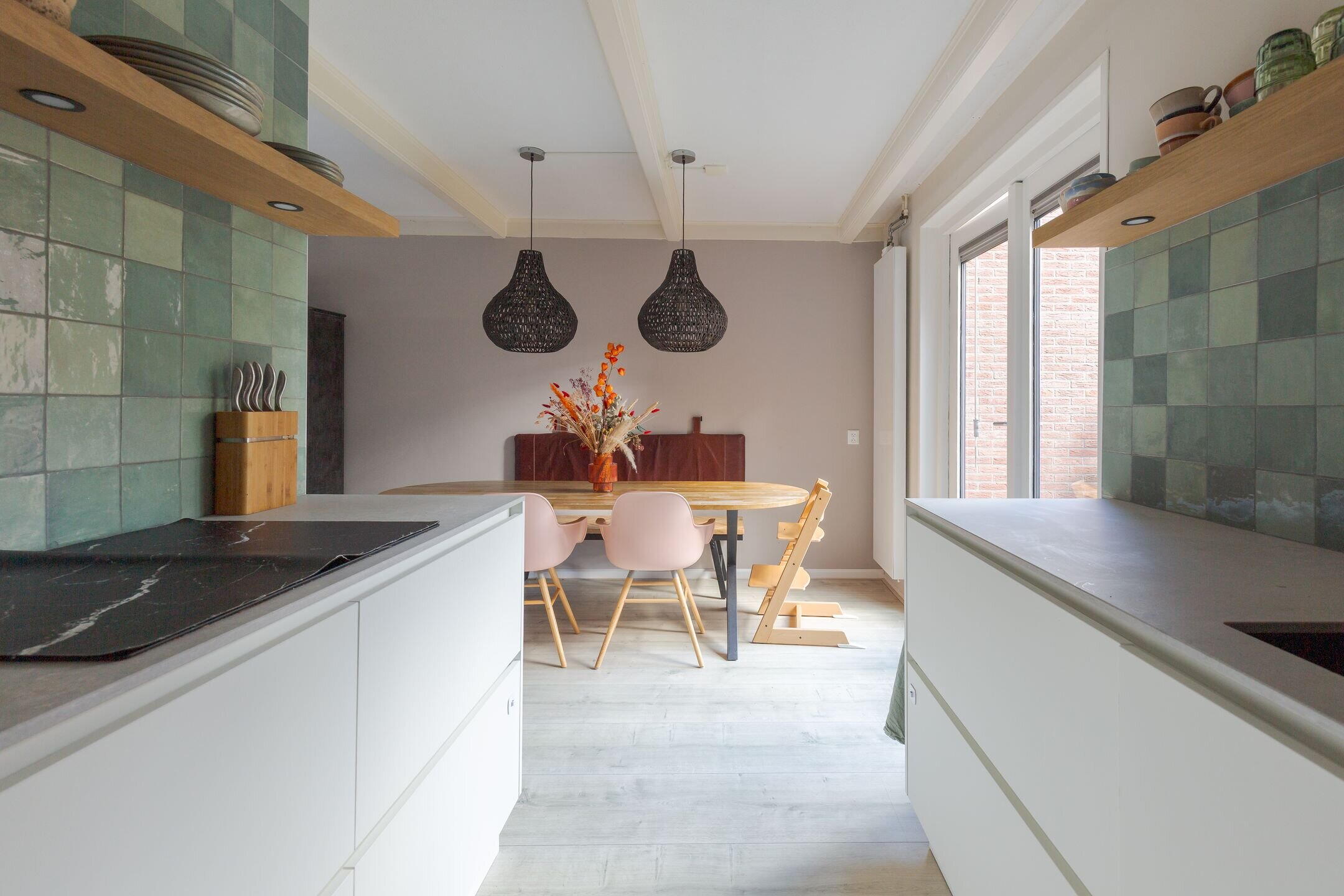 Parkeren doe je dus op je eigen oprit. Via de hal kom je in de woonkamer waar je meteen wordt getrakteerd op een heerlijke sfeer. De zithoek aan de straatzijde en de moderne keuken aan de achterzijde. Deze is uiteraard van alle gemakken voorzien waaronder een inductie kookplaat. De keuken geeft je toegang tot de royale bijkeuken/berging met nog een bergkast en het toilet.