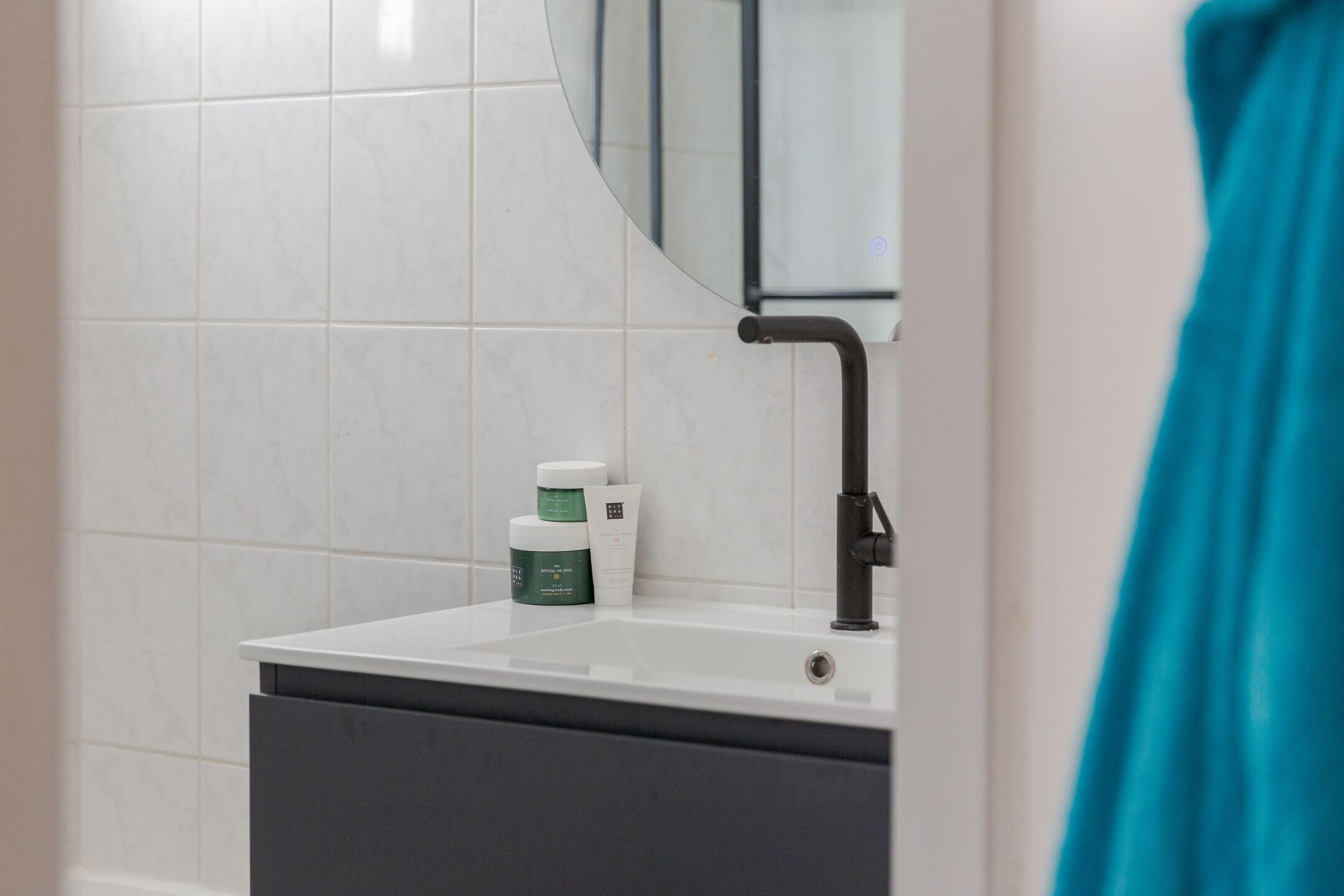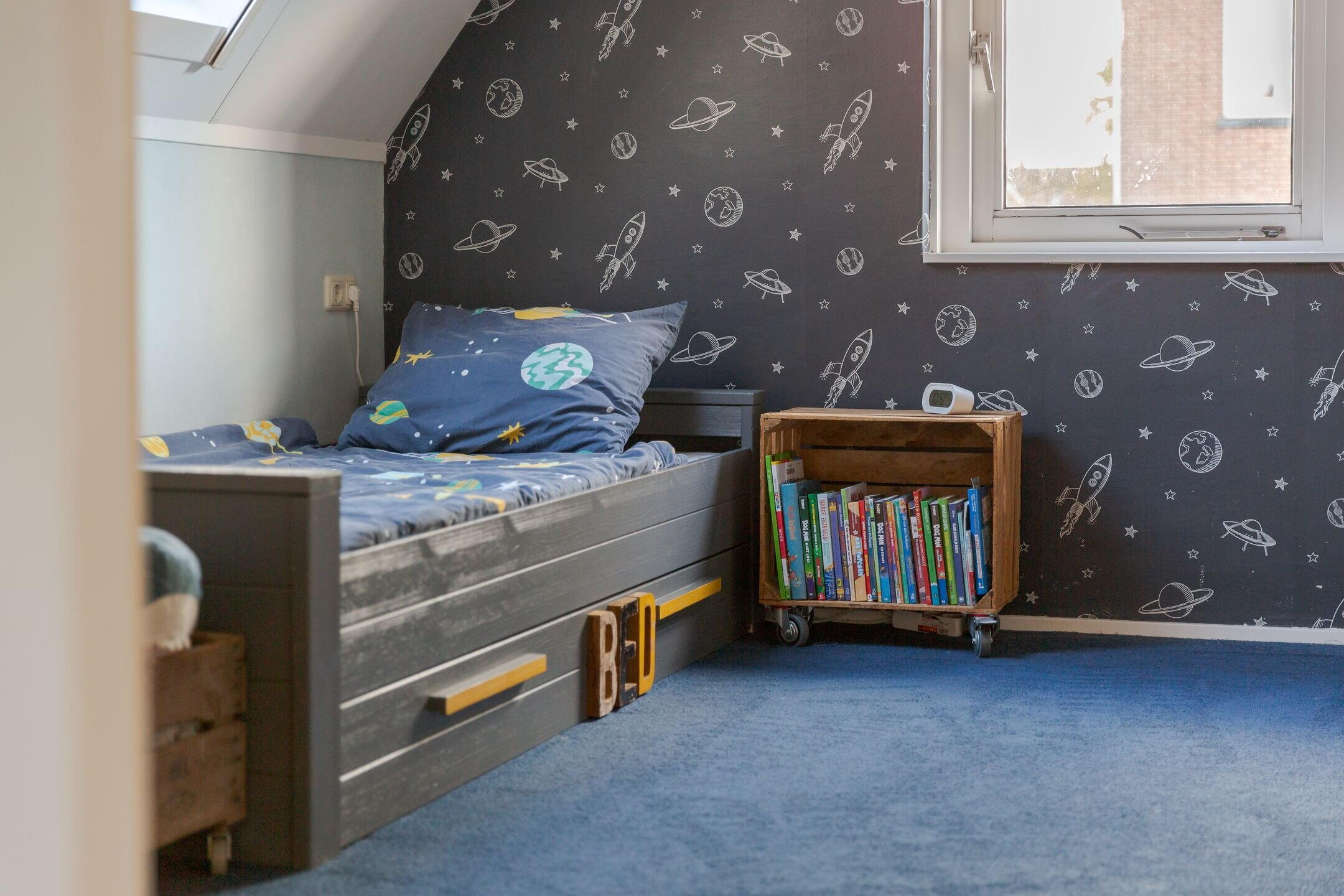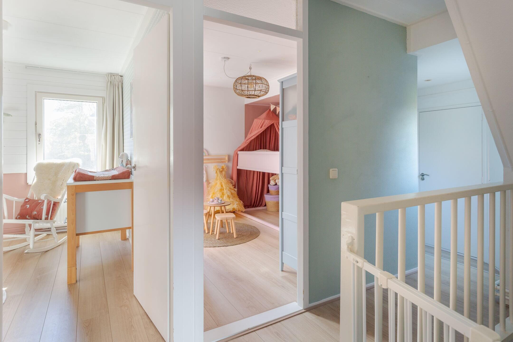 Op de eerste verdieping vind je vier slaapkamers. Door de kap op de bijkeuken is er extra ruimte ontstaan voor een van de slaapkamers, het toilet en veel bergruimte. De moderne badkamer heeft een ligbad met douche en een wasmeubel.