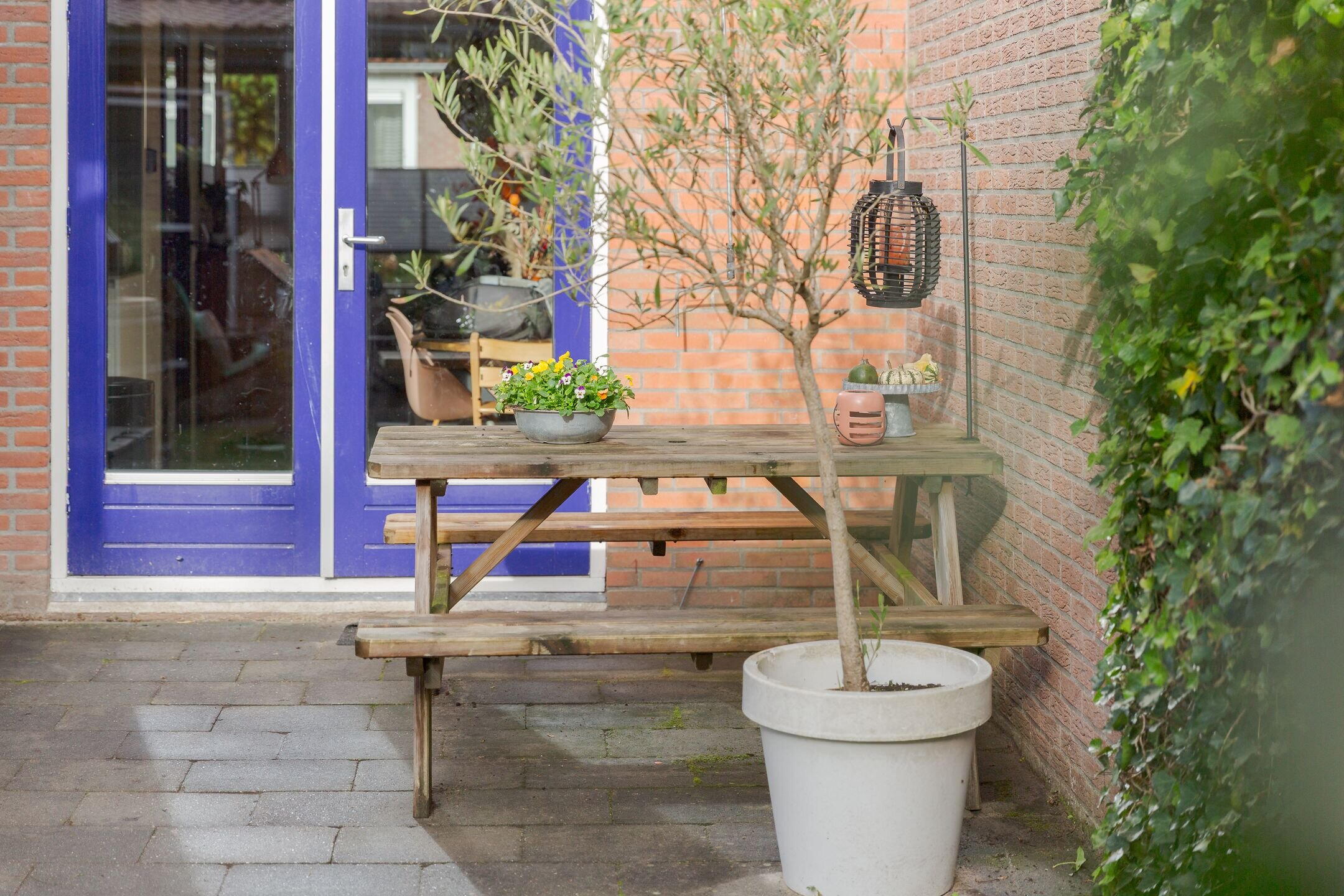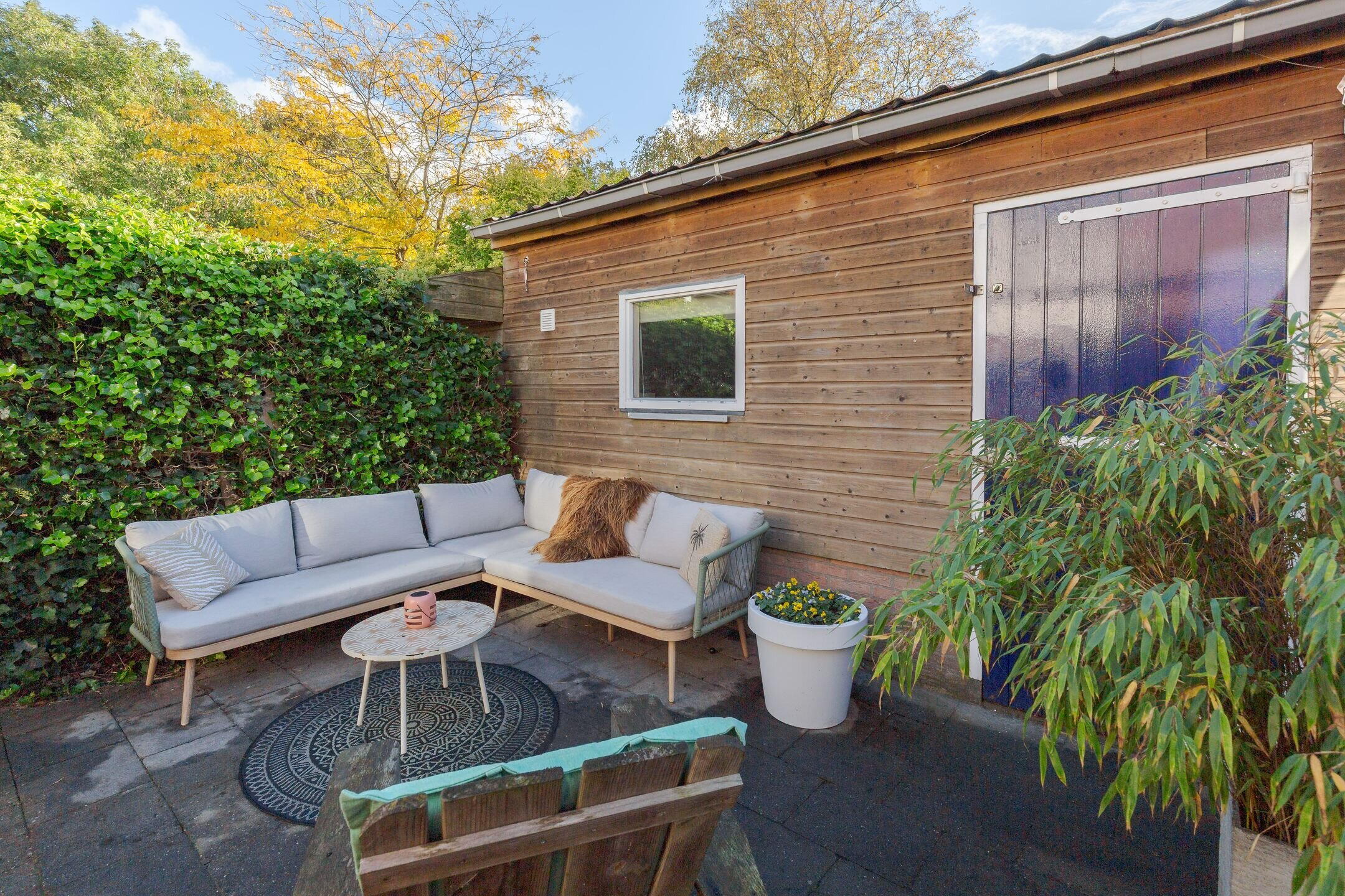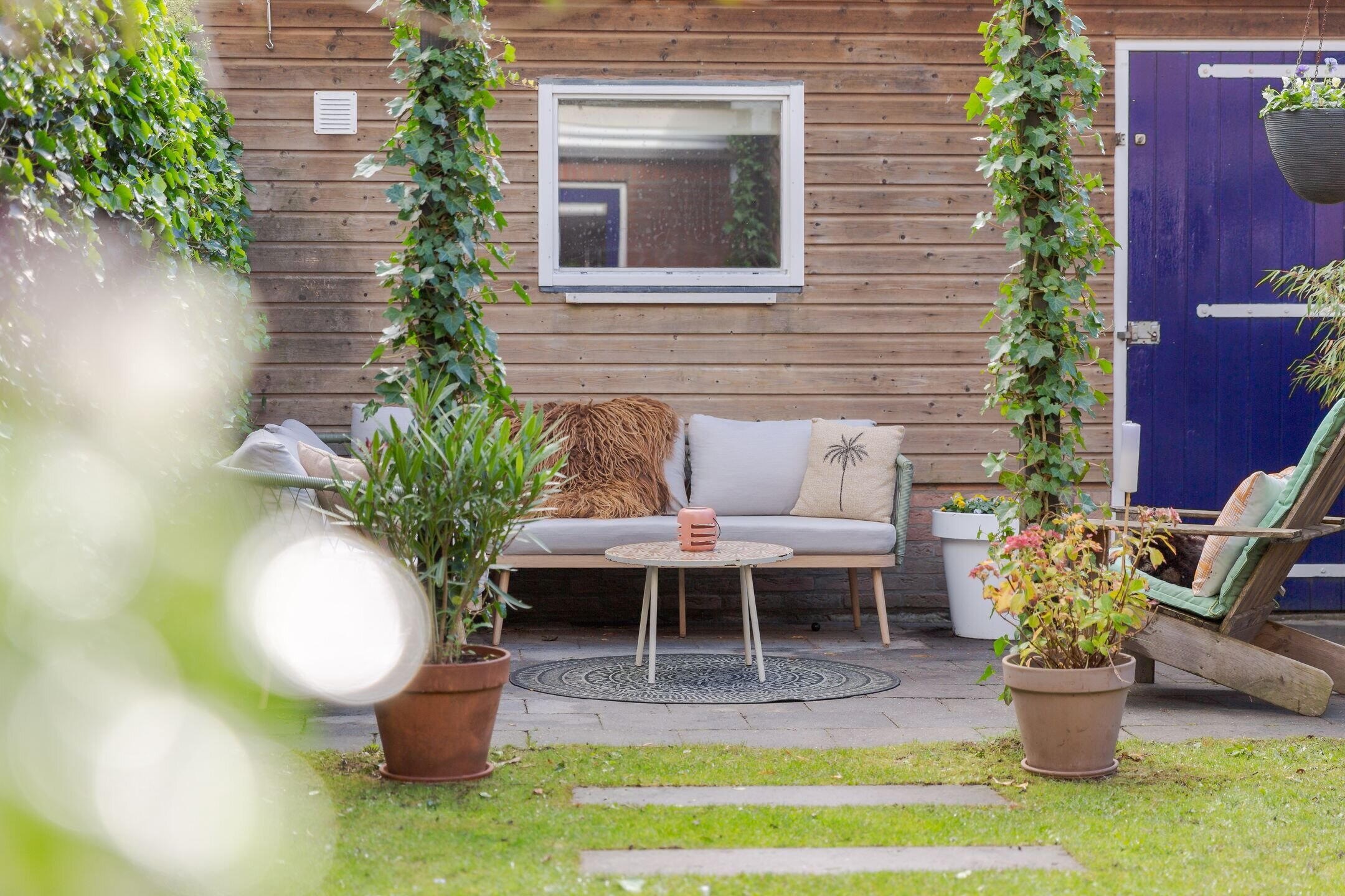 De achtertuin is heerlijk beschut, zonnig en geeft veel privacy. Hier staat ook een flinke schuur, een uitstekende plek om van alles op te bergen, een werkplek, of ja mannen, the mancave!