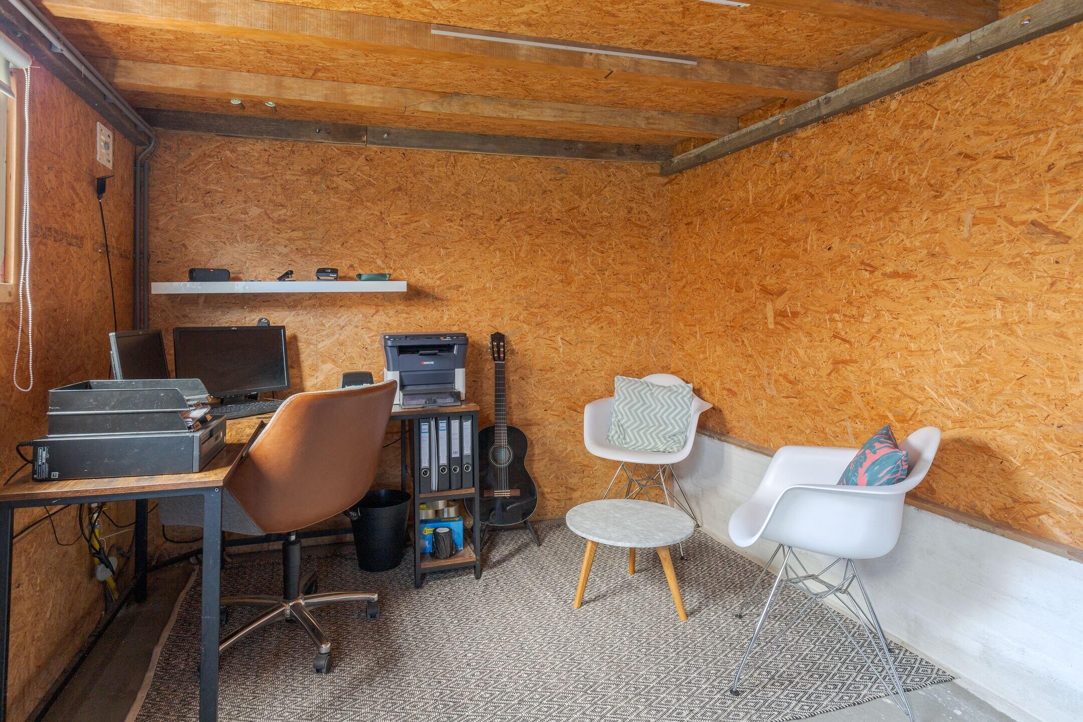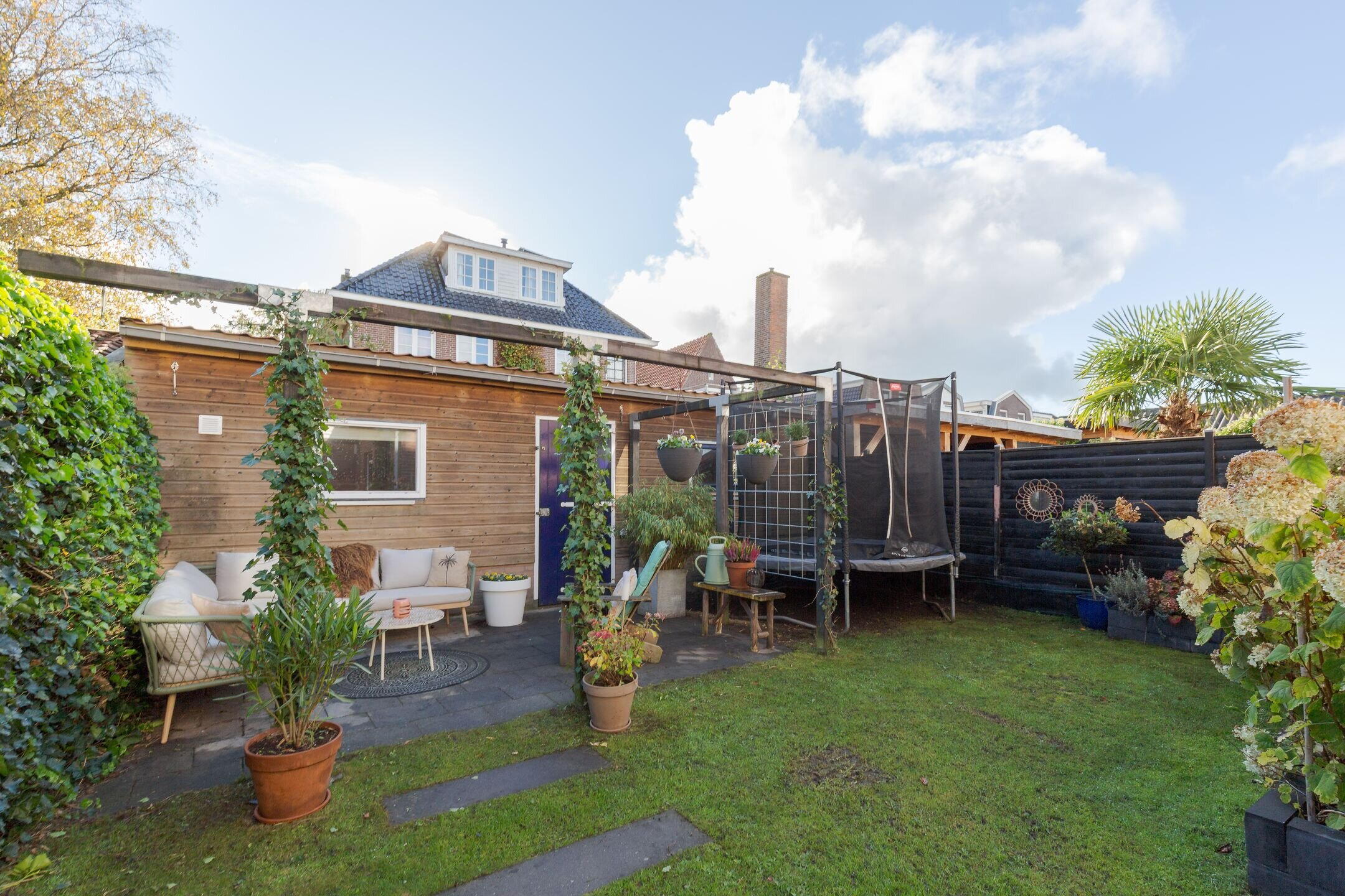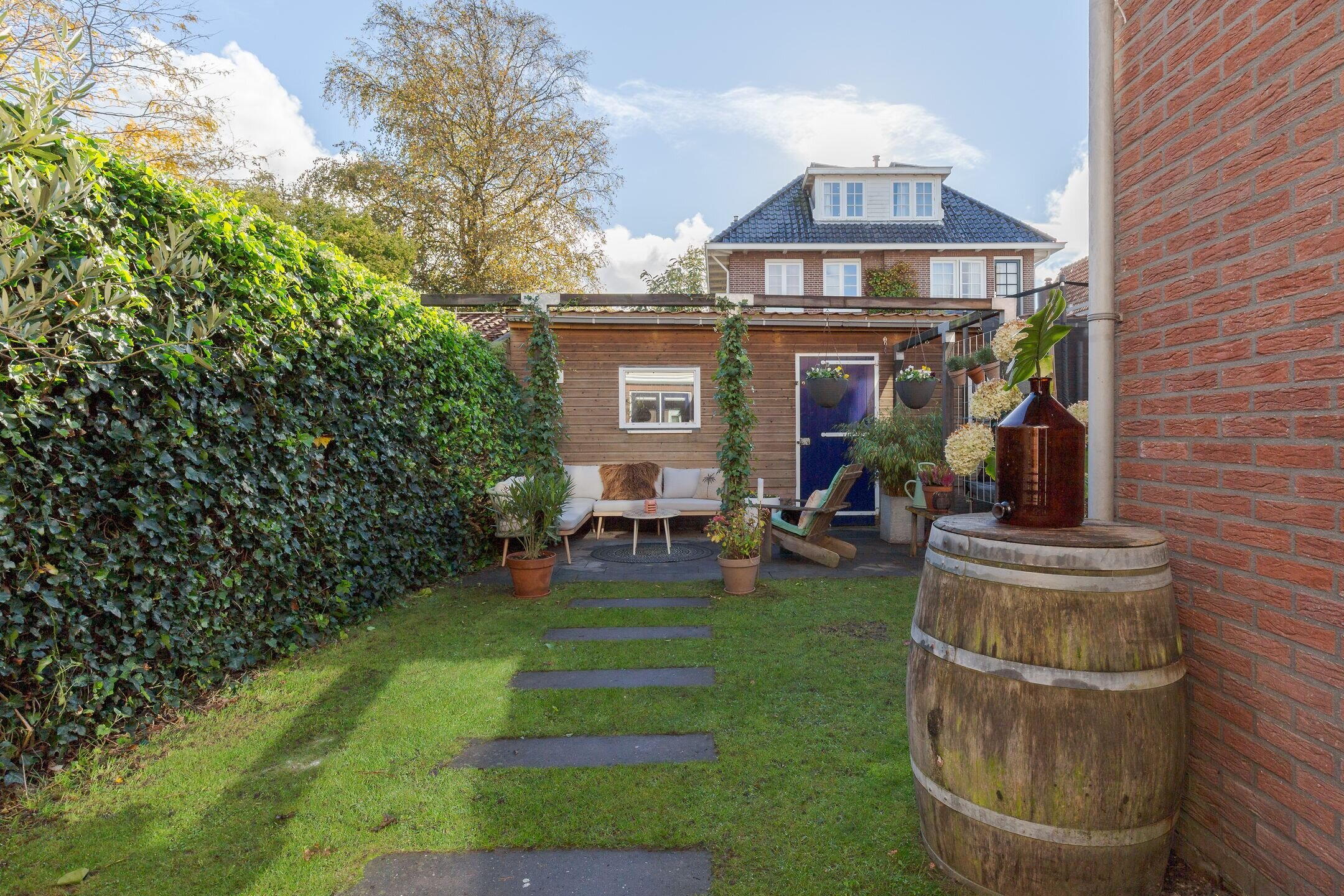 De achtertuin is heerlijk beschut, zonnig en geeft veel privacy. Hier staat ook een flinke schuur, een uitstekende plek om van alles op te bergen, een werkplek, of ja mannen, the mancave!